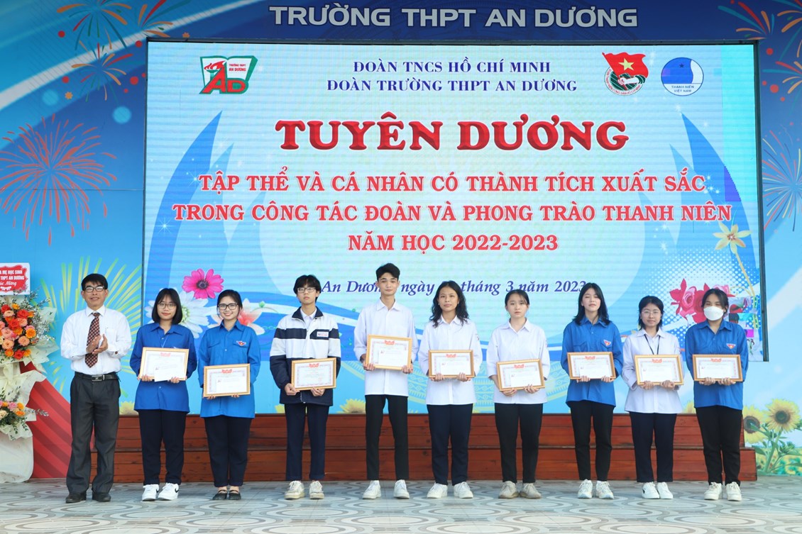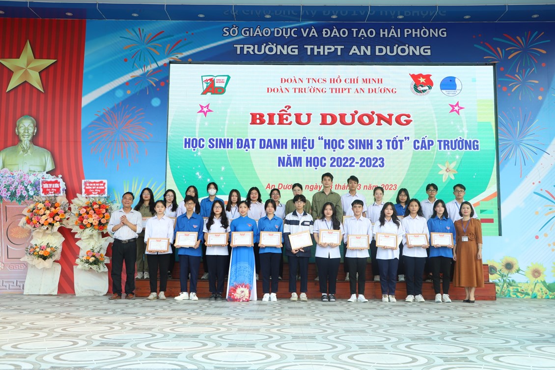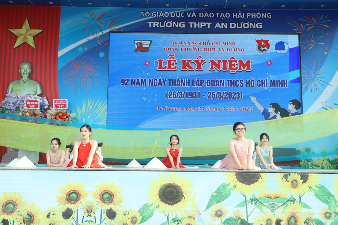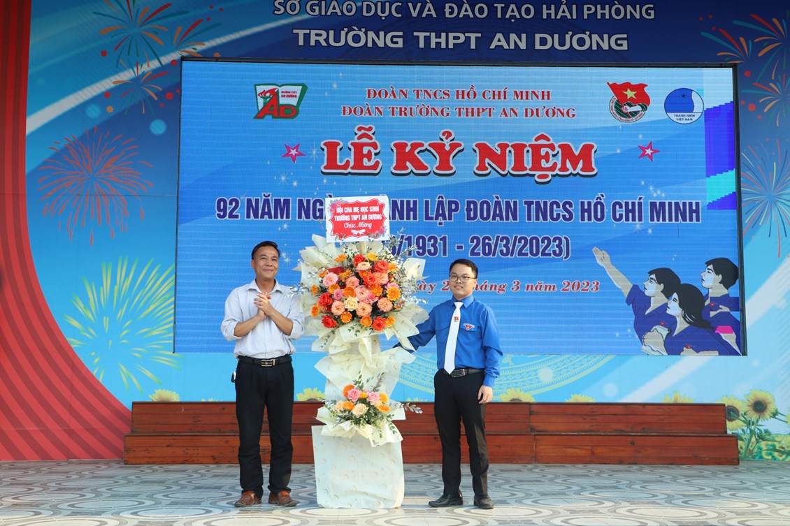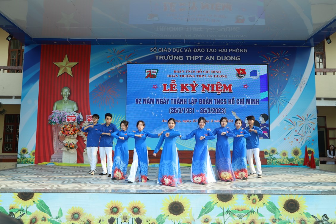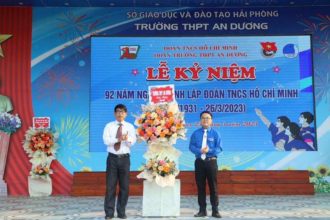 Chiều ngày 23/3/2023, tại trường THPT An Dương, BCH Đoàn trường long trọng tổ chức Lễ kỷ niệm 92 năm Ngày thành lập Đoàn TNCS Hồ Chí Minh (26/3/1931 - 26/3/2023), biểu dương học sinh "Ba tốt" và liên hoan văn nghệ "Giai điệu tháng 3". Tới dự có các đại biểu Huyện đoàn An Dương, ông Nguyễn Văn Môn - Trưởng ban đại diện CMHS nhà trường, thầy Ngô Quang Hoài - Bí thư Chi bộ, Hiệu trưởng nhà trường, cùng đại diện Đoàn viên thanh niên nhà trường. Đây là dịp để thế hệ trẻ trường THPT An Dương ôn lại những truyền thống vẻ vang của Đoàn từ đó thêm tự hào về màu áo xanh thanh niên mà mình đã và đang mặc và thêm quyết tâm hơn trong nhiệm vụ "Rèn đức - Luyện tài - Vì ngày mai lập nghiệp". Buổi lễ đã diễn ra trang trọng, sôi nổi và thành công.