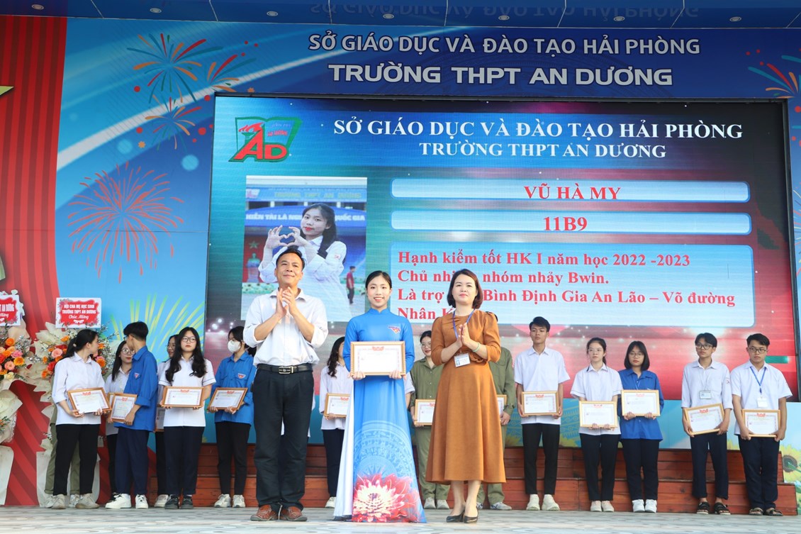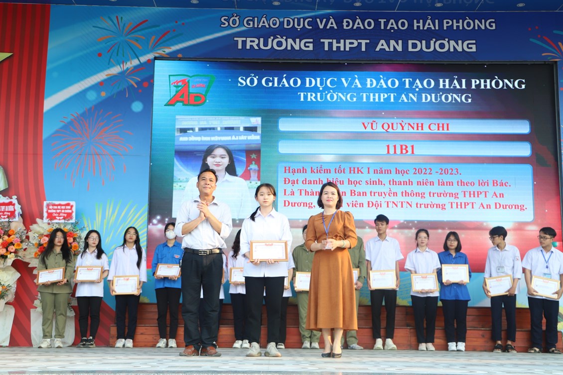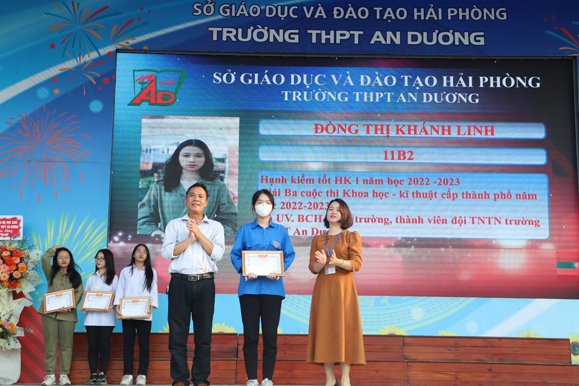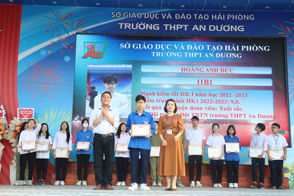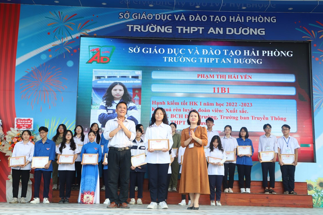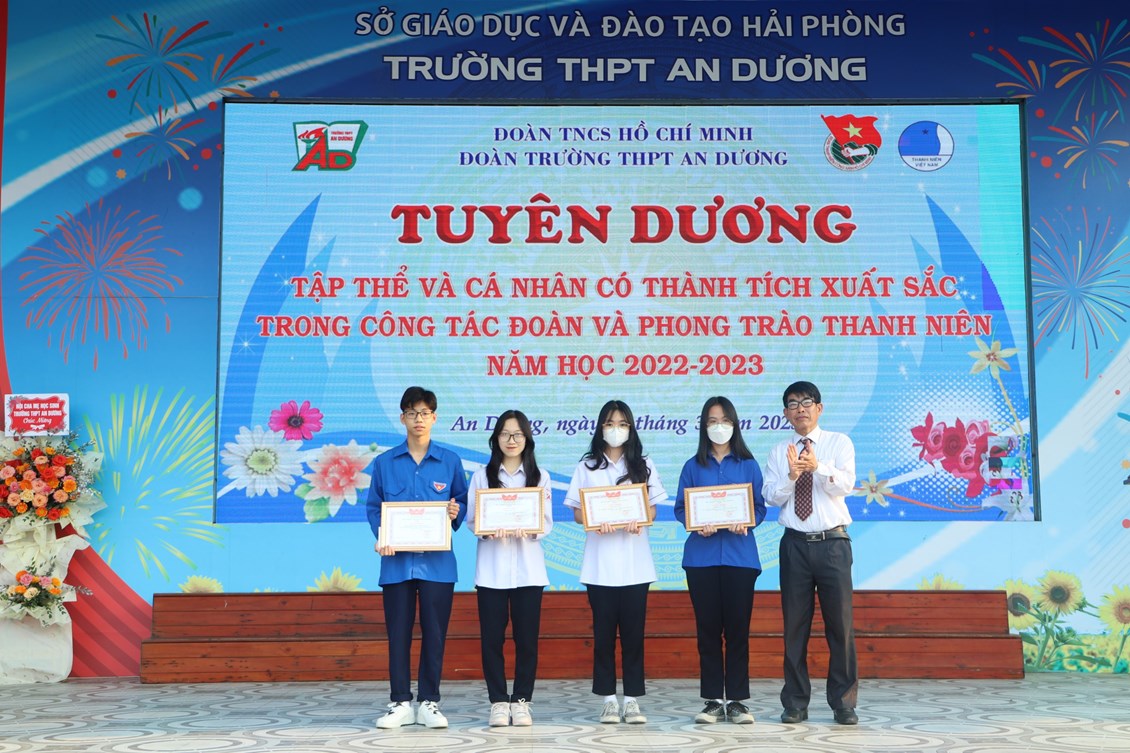 Chiều ngày 23/3/2023, tại trường THPT An Dương, BCH Đoàn trường long trọng tổ chức Lễ kỷ niệm 92 năm Ngày thành lập Đoàn TNCS Hồ Chí Minh (26/3/1931 - 26/3/2023), biểu dương học sinh "Ba tốt" và liên hoan văn nghệ "Giai điệu tháng 3". Tới dự có các đại biểu Huyện đoàn An Dương, ông Nguyễn Văn Môn - Trưởng ban đại diện CMHS nhà trường, thầy Ngô Quang Hoài - Bí thư Chi bộ, Hiệu trưởng nhà trường, cùng đại diện Đoàn viên thanh niên nhà trường. Đây là dịp để thế hệ trẻ trường THPT An Dương ôn lại những truyền thống vẻ vang của Đoàn từ đó thêm tự hào về màu áo xanh thanh niên mà mình đã và đang mặc và thêm quyết tâm hơn trong nhiệm vụ "Rèn đức - Luyện tài - Vì ngày mai lập nghiệp". Buổi lễ đã diễn ra trang trọng, sôi nổi và thành công.