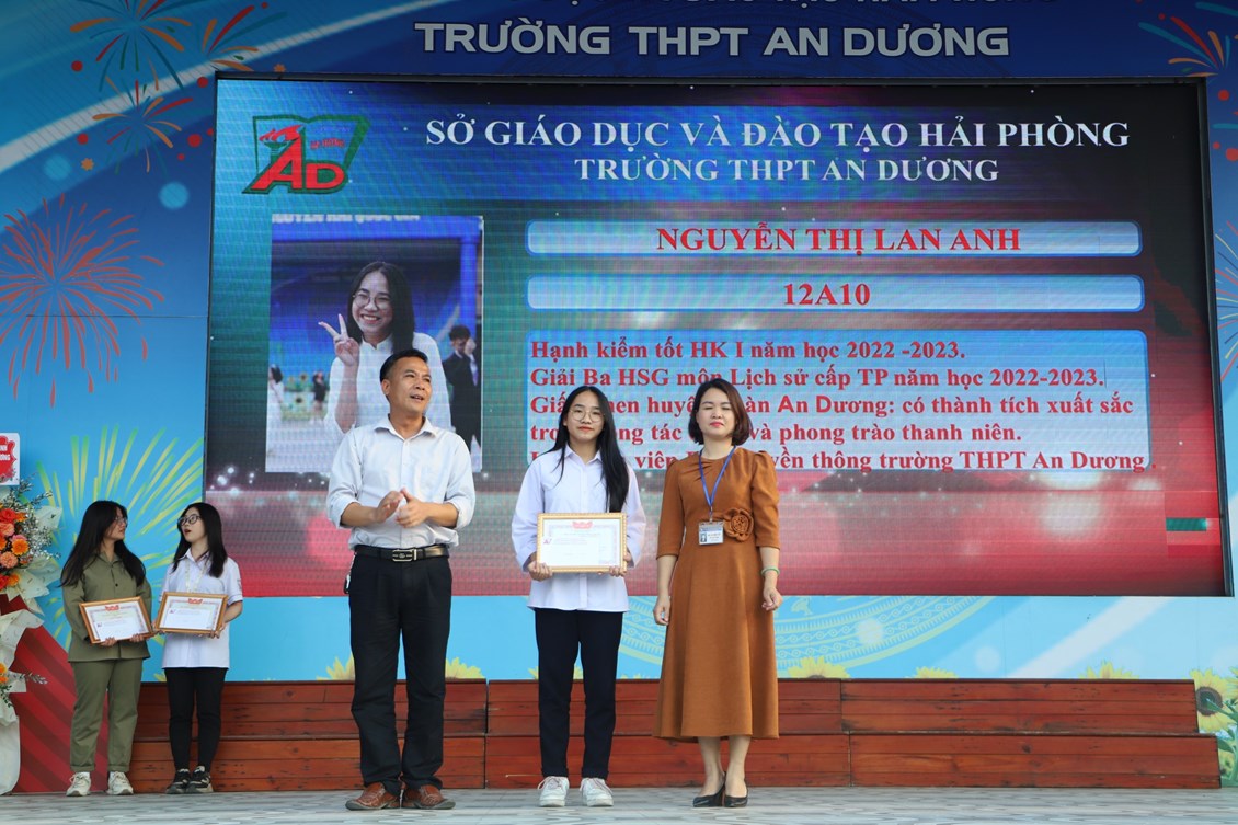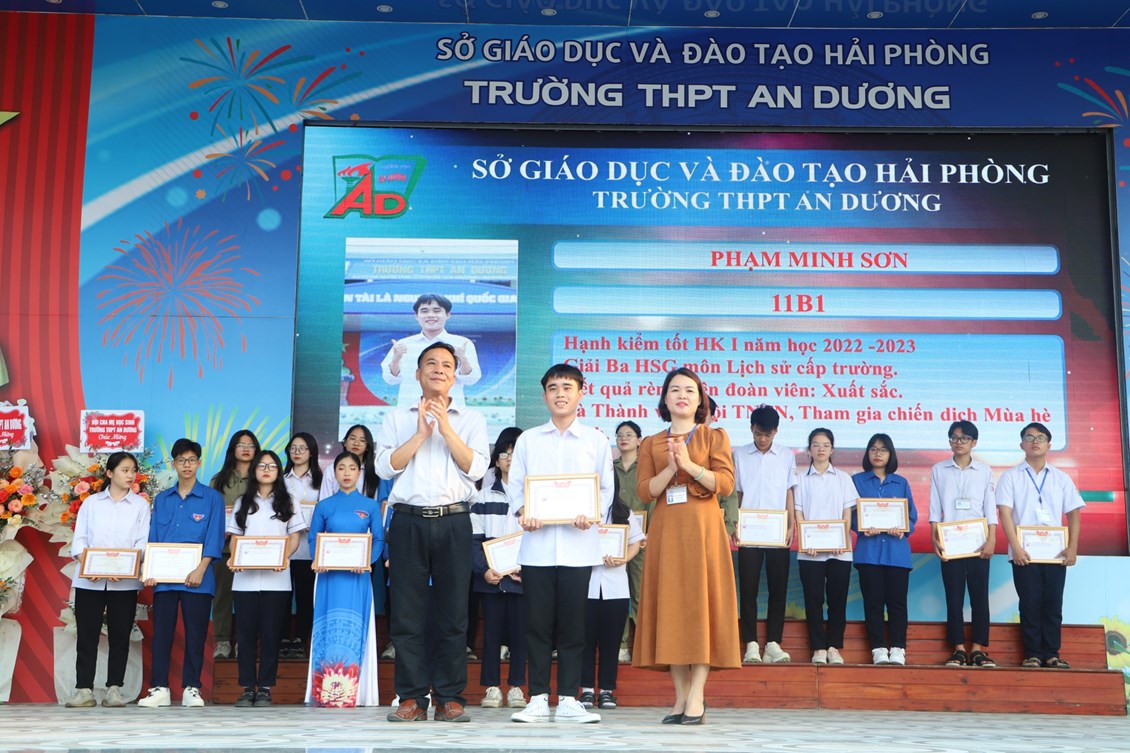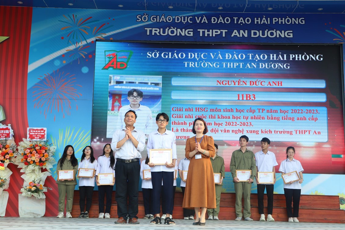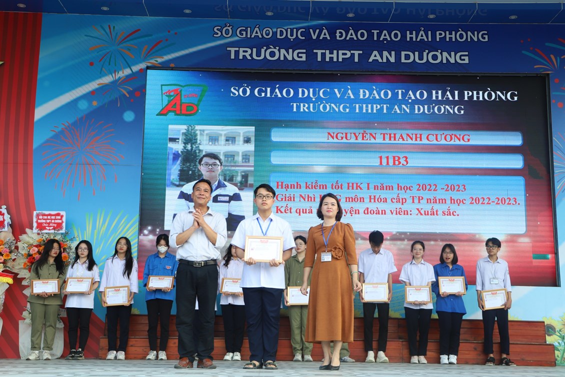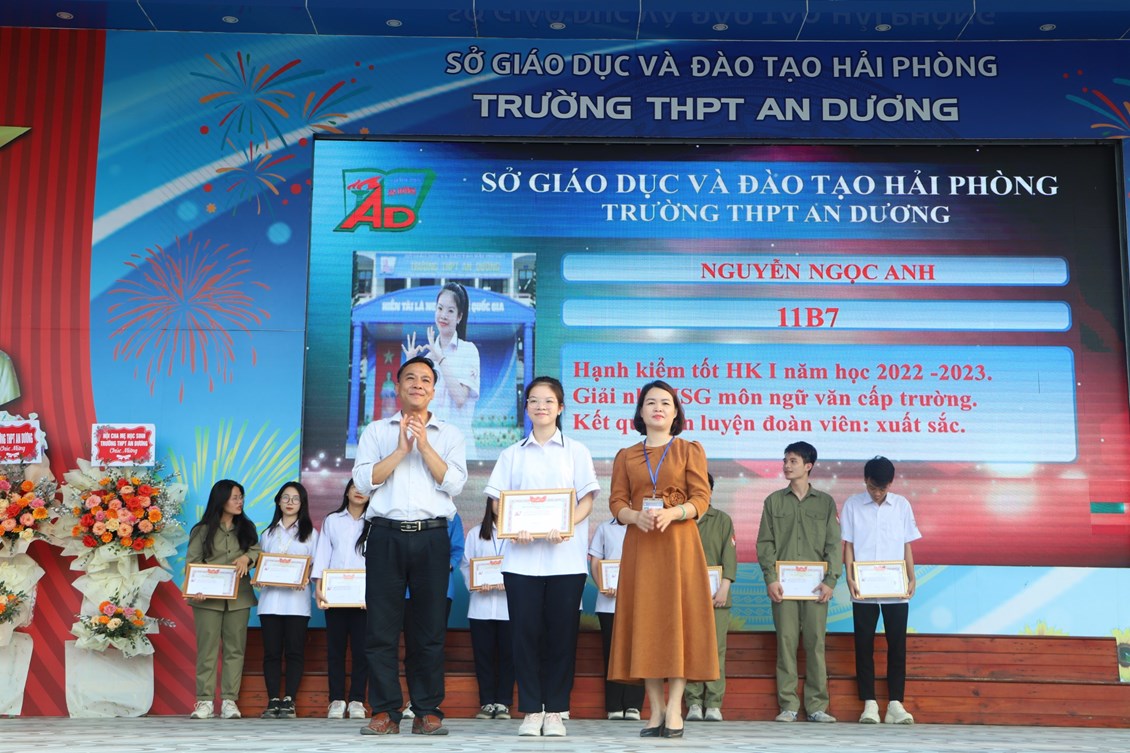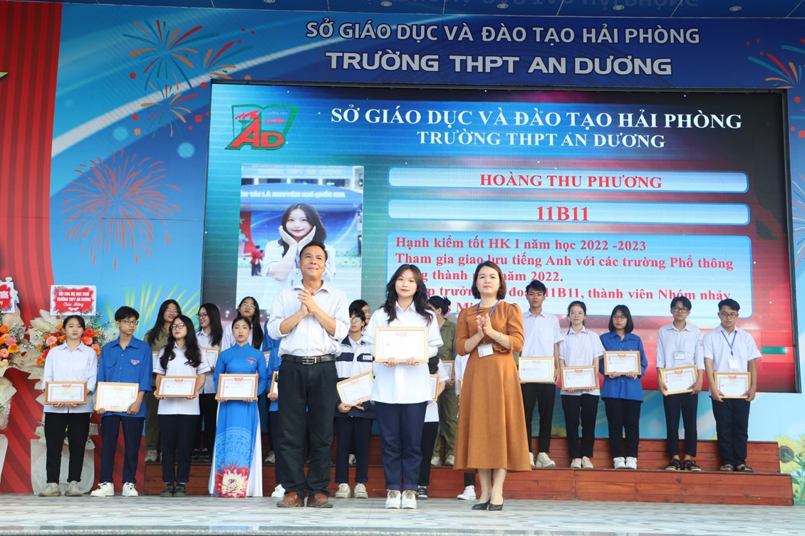 Chiều ngày 23/3/2023, tại trường THPT An Dương, BCH Đoàn trường long trọng tổ chức Lễ kỷ niệm 92 năm Ngày thành lập Đoàn TNCS Hồ Chí Minh (26/3/1931 - 26/3/2023), biểu dương học sinh "Ba tốt" và liên hoan văn nghệ "Giai điệu tháng 3". Tới dự có các đại biểu Huyện đoàn An Dương, ông Nguyễn Văn Môn - Trưởng ban đại diện CMHS nhà trường, thầy Ngô Quang Hoài - Bí thư Chi bộ, Hiệu trưởng nhà trường, cùng đại diện Đoàn viên thanh niên nhà trường. Đây là dịp để thế hệ trẻ trường THPT An Dương ôn lại những truyền thống vẻ vang của Đoàn từ đó thêm tự hào về màu áo xanh thanh niên mà mình đã và đang mặc và thêm quyết tâm hơn trong nhiệm vụ "Rèn đức - Luyện tài - Vì ngày mai lập nghiệp". Buổi lễ đã diễn ra trang trọng, sôi nổi và thành công.