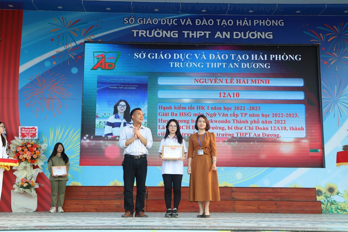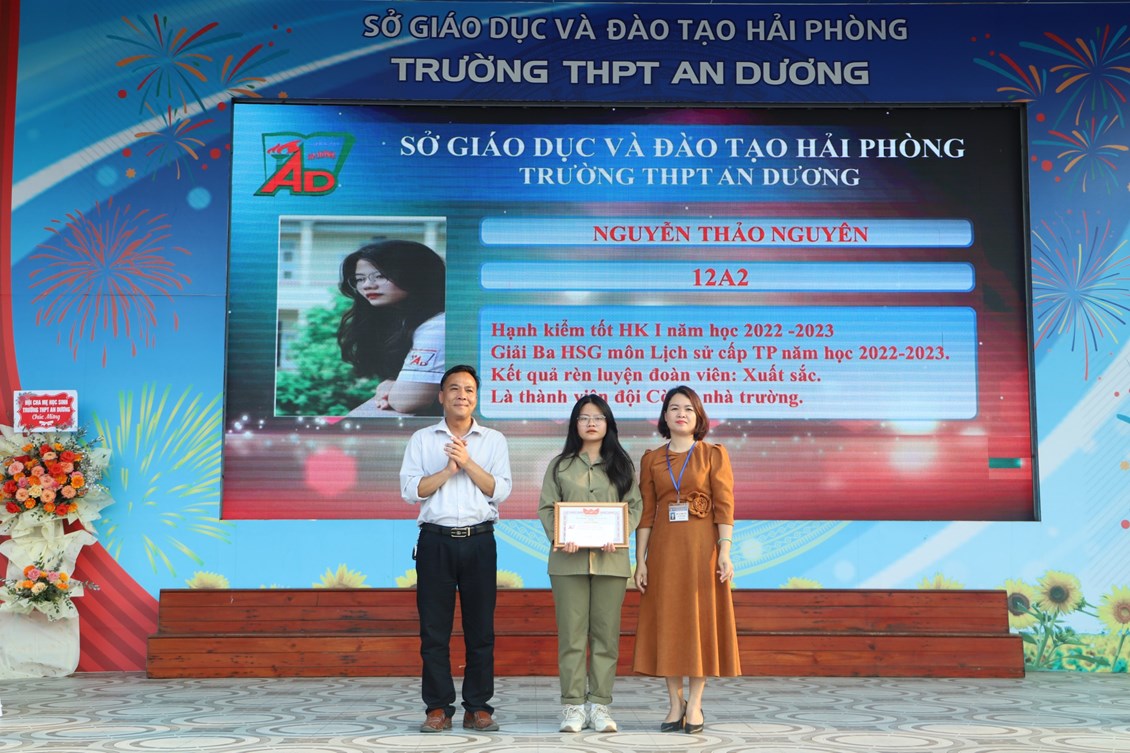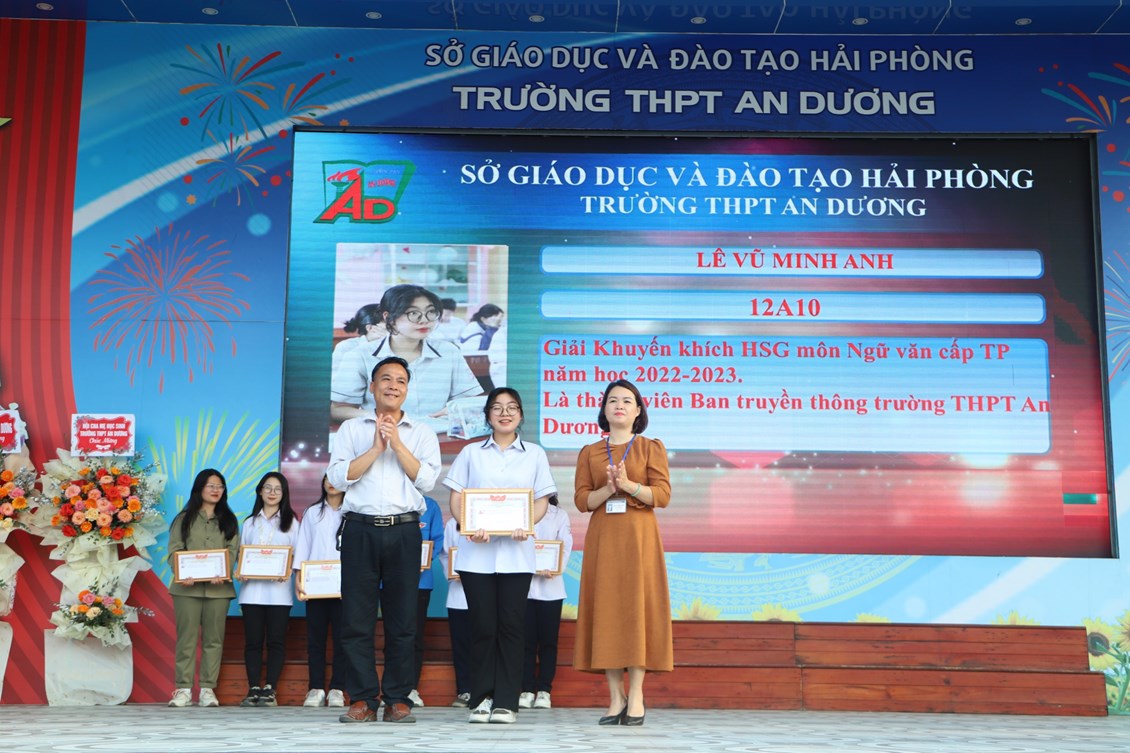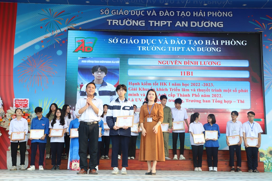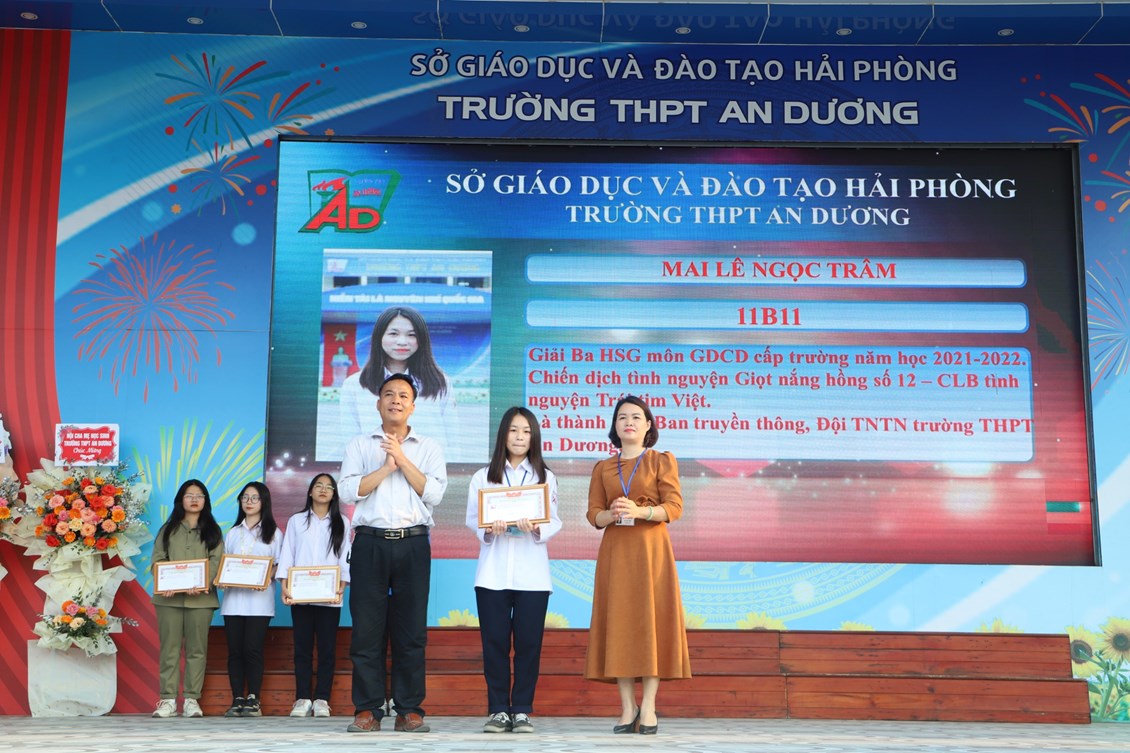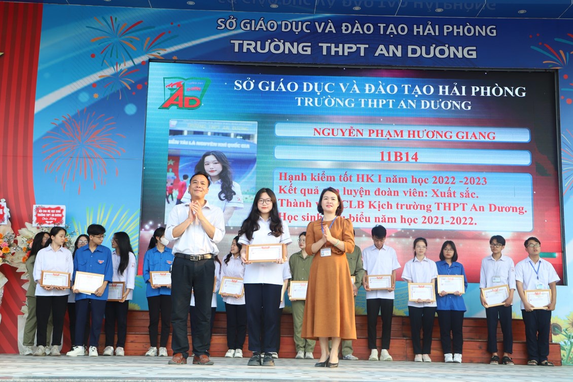 Chiều ngày 23/3/2023, tại trường THPT An Dương, BCH Đoàn trường long trọng tổ chức Lễ kỷ niệm 92 năm Ngày thành lập Đoàn TNCS Hồ Chí Minh (26/3/1931 - 26/3/2023), biểu dương học sinh "Ba tốt" và liên hoan văn nghệ "Giai điệu tháng 3". Tới dự có các đại biểu Huyện đoàn An Dương, ông Nguyễn Văn Môn - Trưởng ban đại diện CMHS nhà trường, thầy Ngô Quang Hoài - Bí thư Chi bộ, Hiệu trưởng nhà trường, cùng đại diện Đoàn viên thanh niên nhà trường. Đây là dịp để thế hệ trẻ trường THPT An Dương ôn lại những truyền thống vẻ vang của Đoàn từ đó thêm tự hào về màu áo xanh thanh niên mà mình đã và đang mặc và thêm quyết tâm hơn trong nhiệm vụ "Rèn đức - Luyện tài - Vì ngày mai lập nghiệp". Buổi lễ đã diễn ra trang trọng, sôi nổi và thành công.
