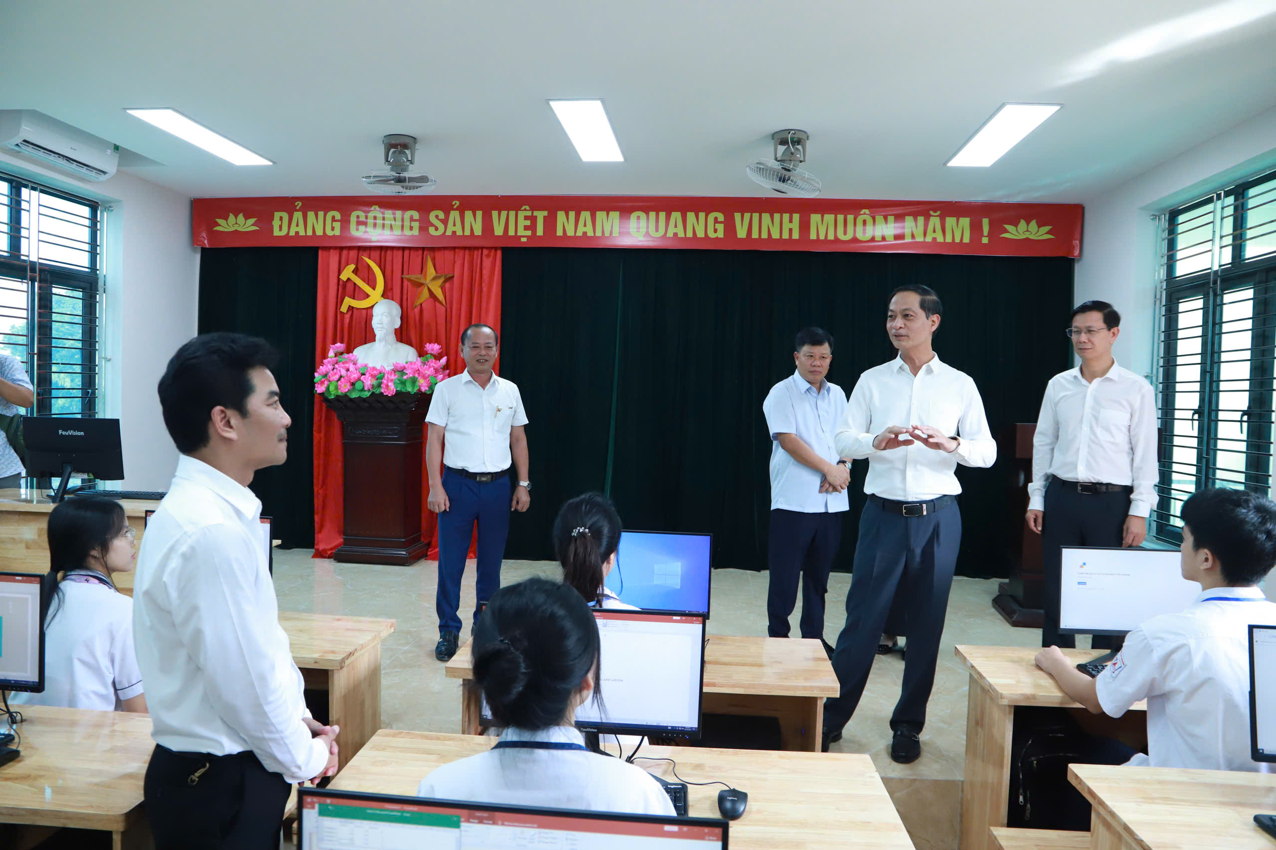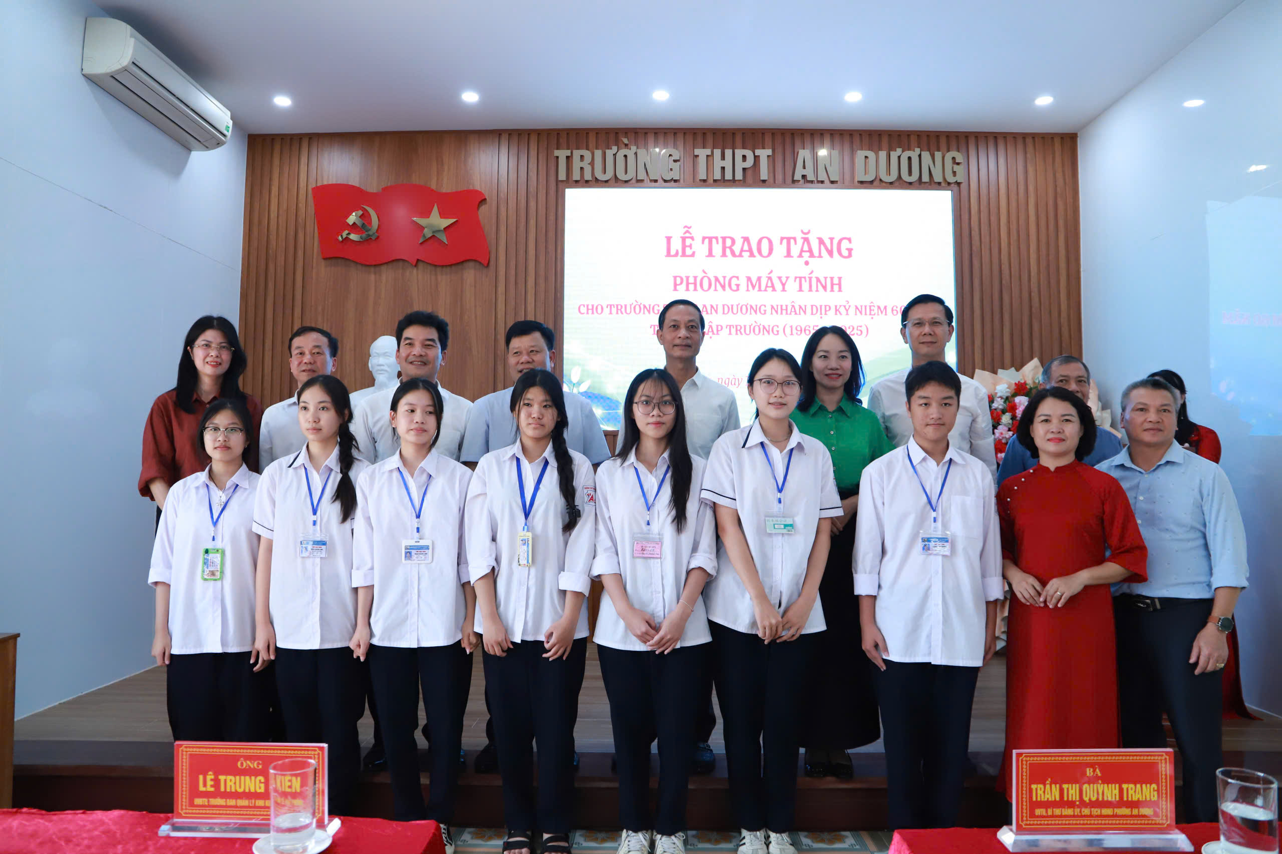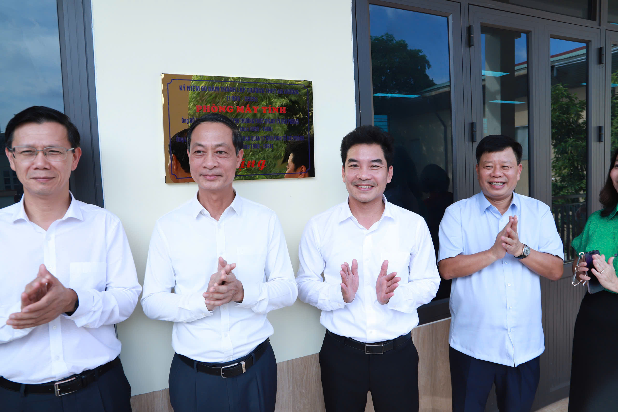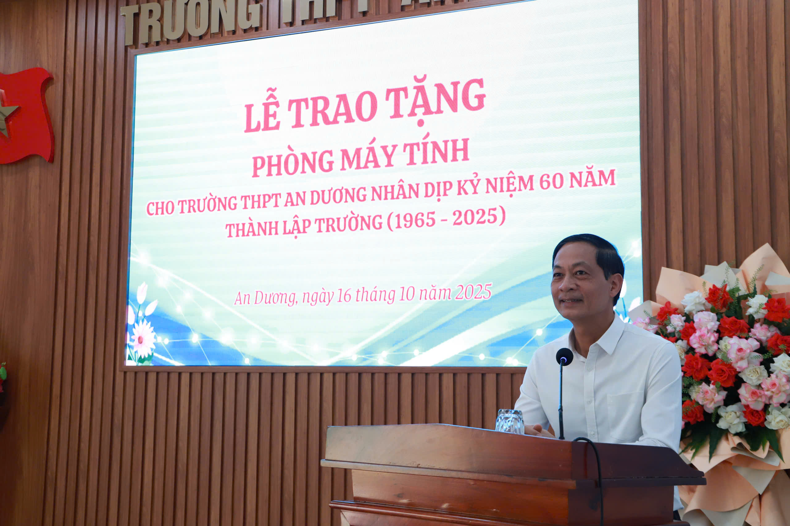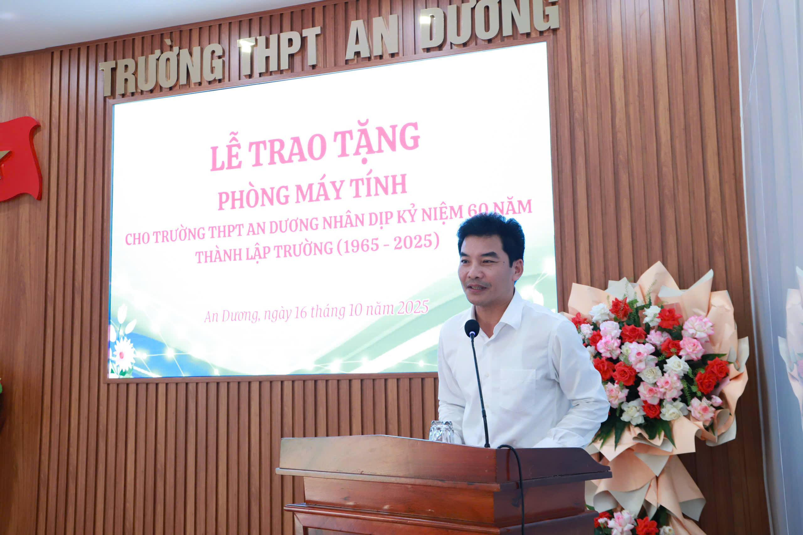 Thầy Vũ Văn Huy, Hiệu trưởng nhà trường, đại diện cho toàn thể cán bộ, giáo viên, học sinh nhà trường bày tỏ sự cảm ơn sâu sắc trước sự quan tâm của các đồng chí lãnh đạo thành phố, đồng thời là những cựu học sinh đã trưởng thành từ ngôi trường phổ thông An Dương và đã thành đạt trên con đường công danh, sự nghiệp. Thầy giáo cam kết thầy và trò nhà trường sẽ sử dụng hiệu quả phòng máy tính được trao tặng hôm nay trong công tác giảng dạy và học tập.