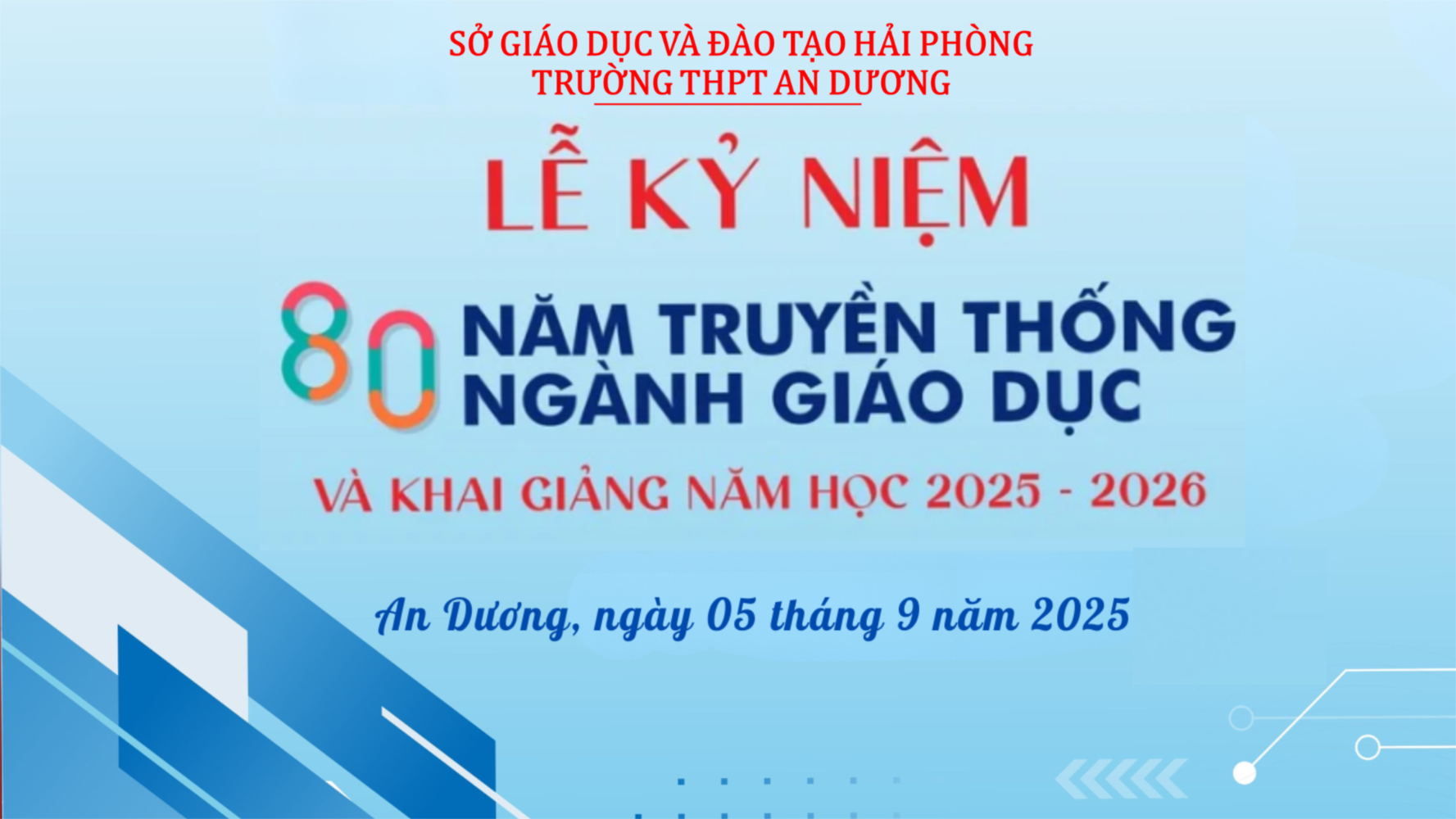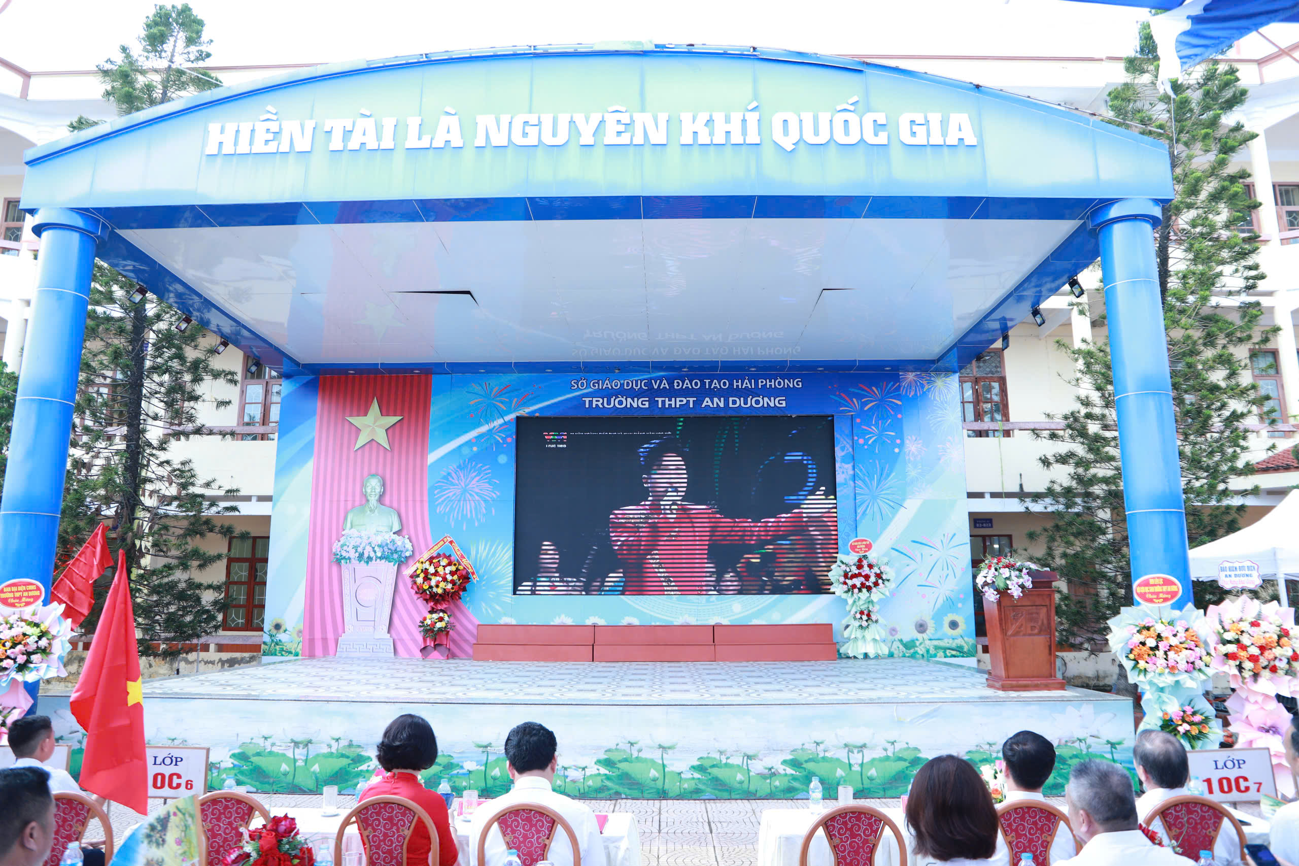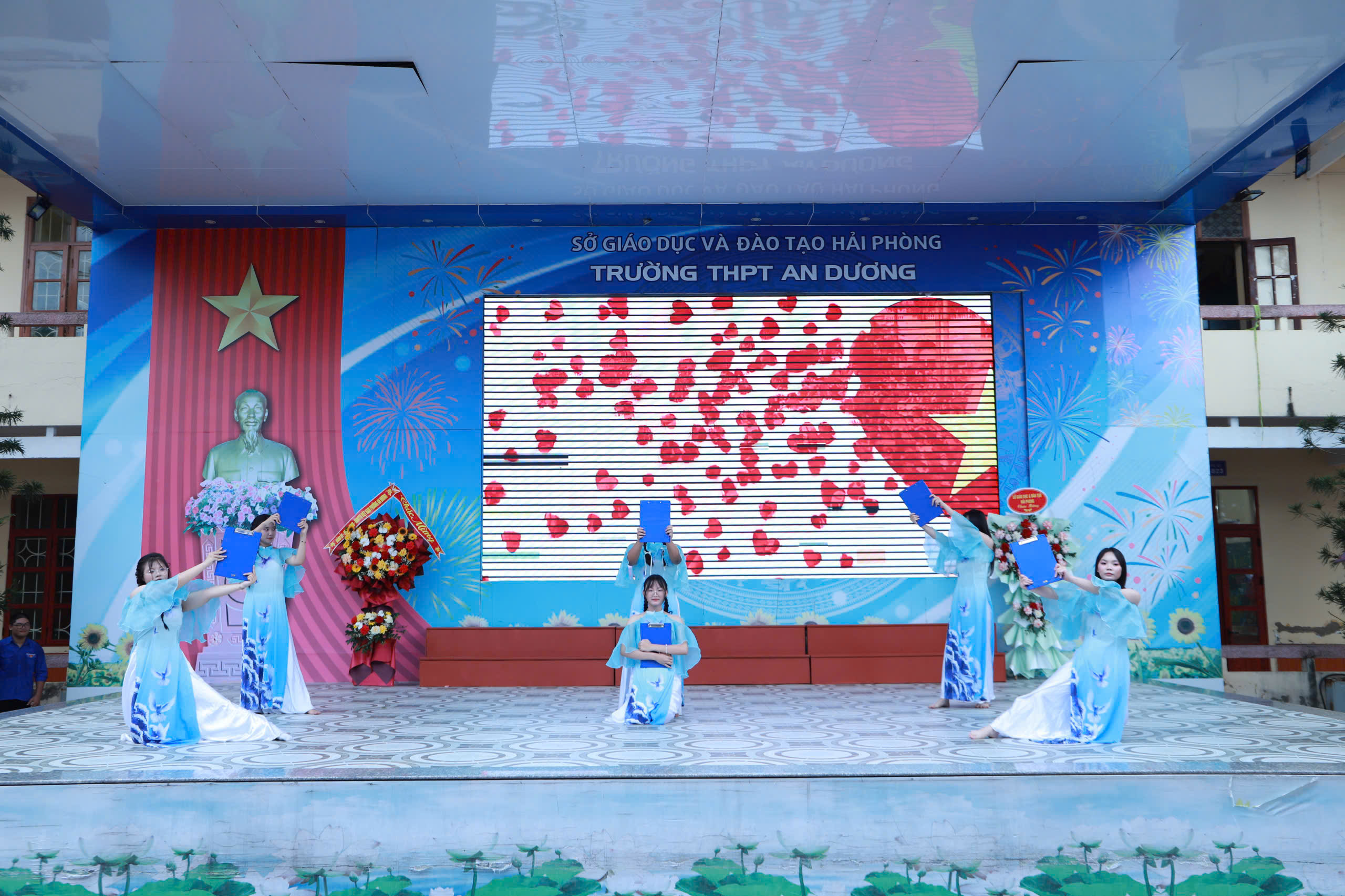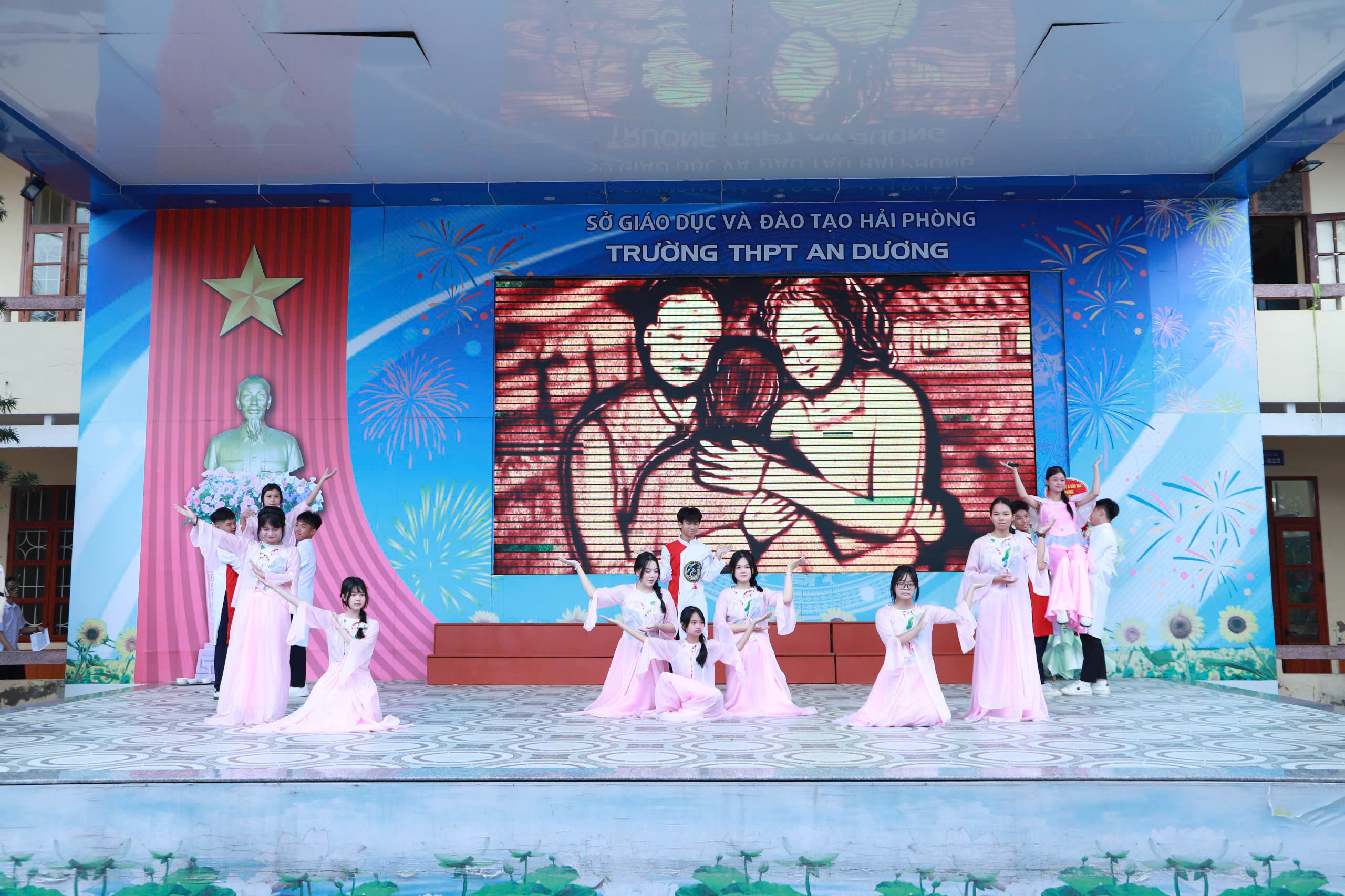 cùng các trường học trong thành phố và trên cả nước, thầy và trò Trường THPT An Dương tưng bừng, phấn khởi bước vào năm học mới. Các đồng chí lãnh đạo Đảng ủy, HĐND, UBND, UBMTTQ, các Ban, ngành của Phường An Dương và đại biểu Sở GD&ĐT đến dự, tặng hoa, quà chúc mừng chung vui cùng thầy, trò nhà trường.