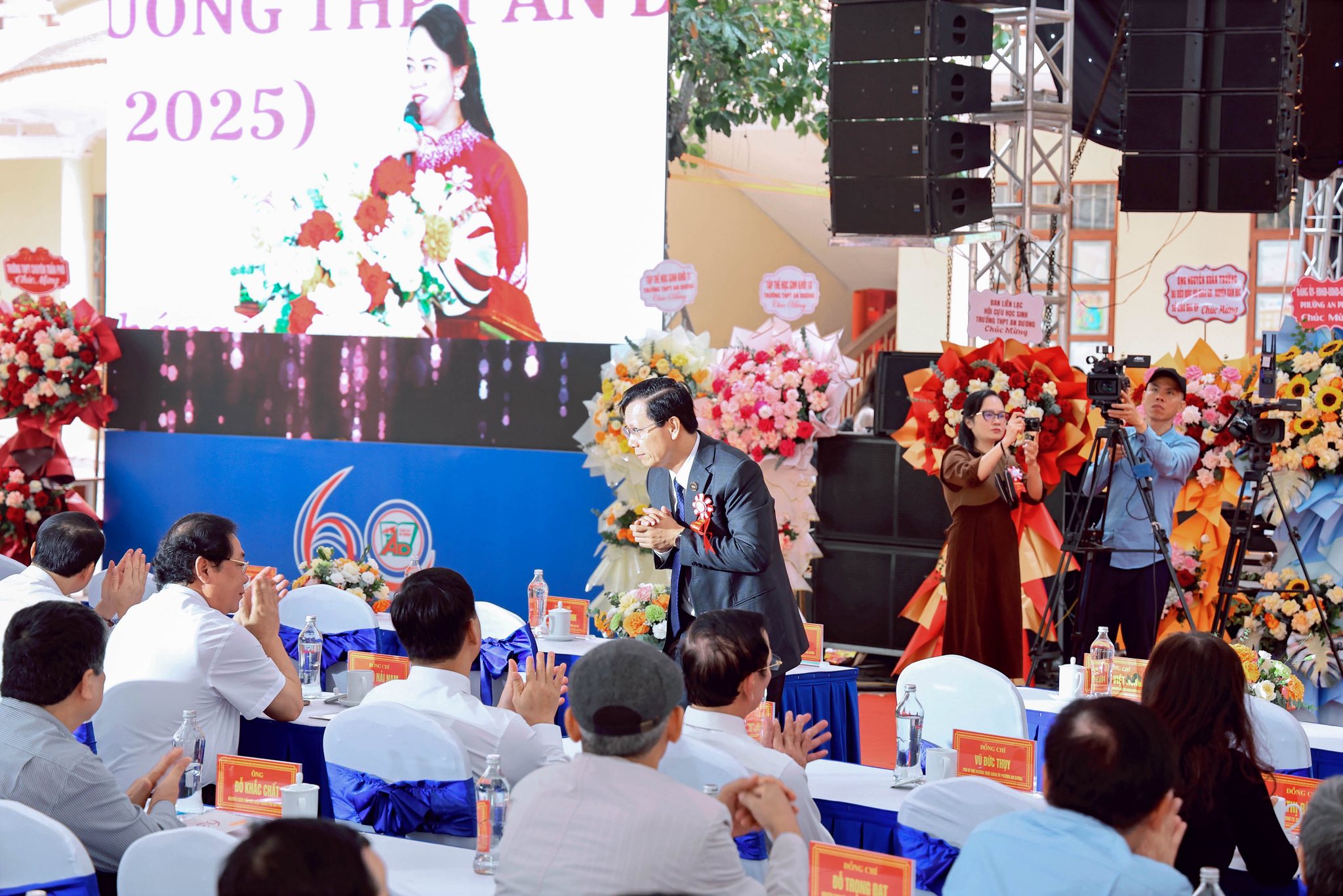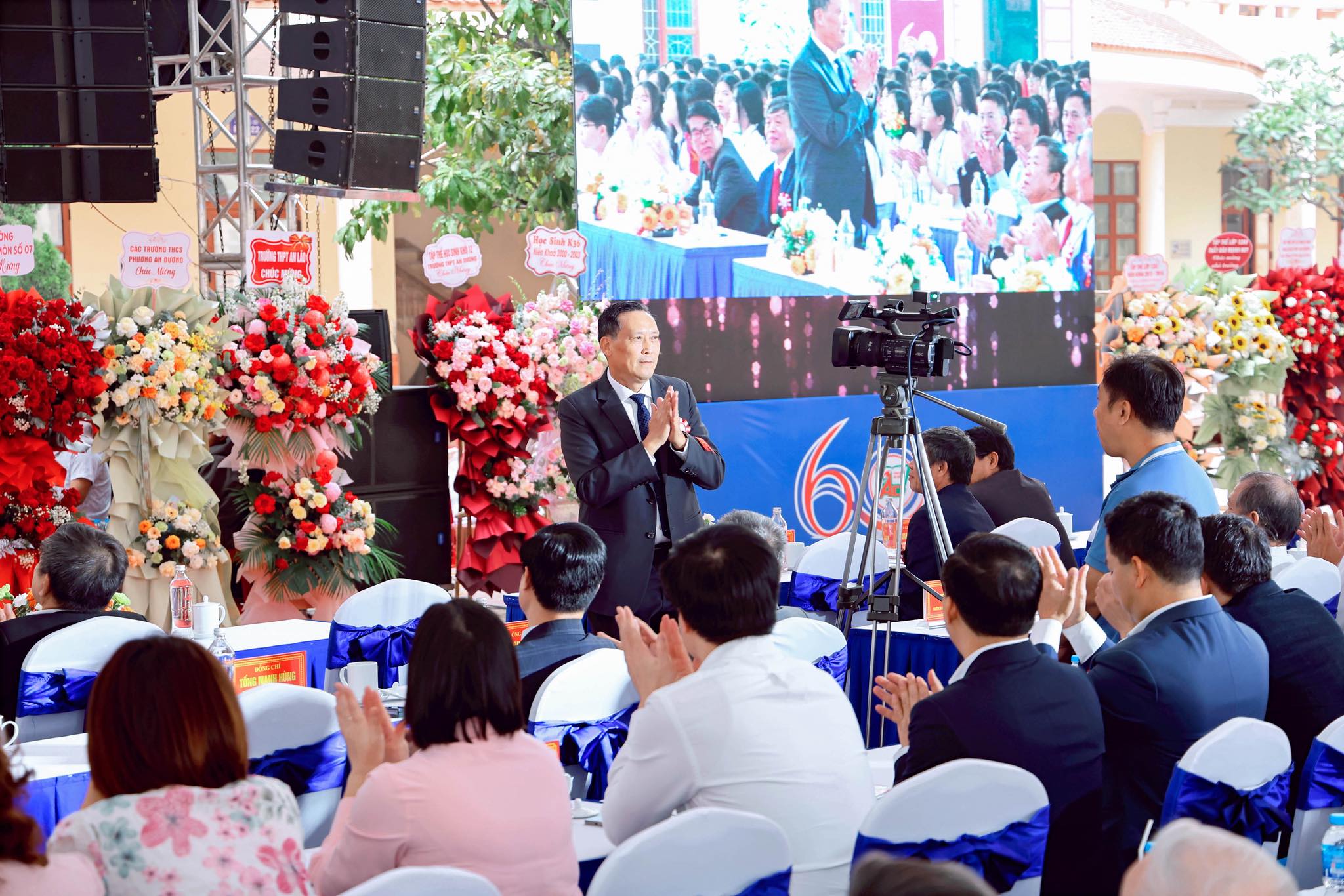 Trong diễn văn truyền thống, thầy Vũ Văn Huy – hiệu trưởng nhà trường đã cùng đại biểu nhìn lại hành trình 60 năm từ những lớp học tranh tre, mái lá thời chiến đến một ngôi trường hiện đại với: