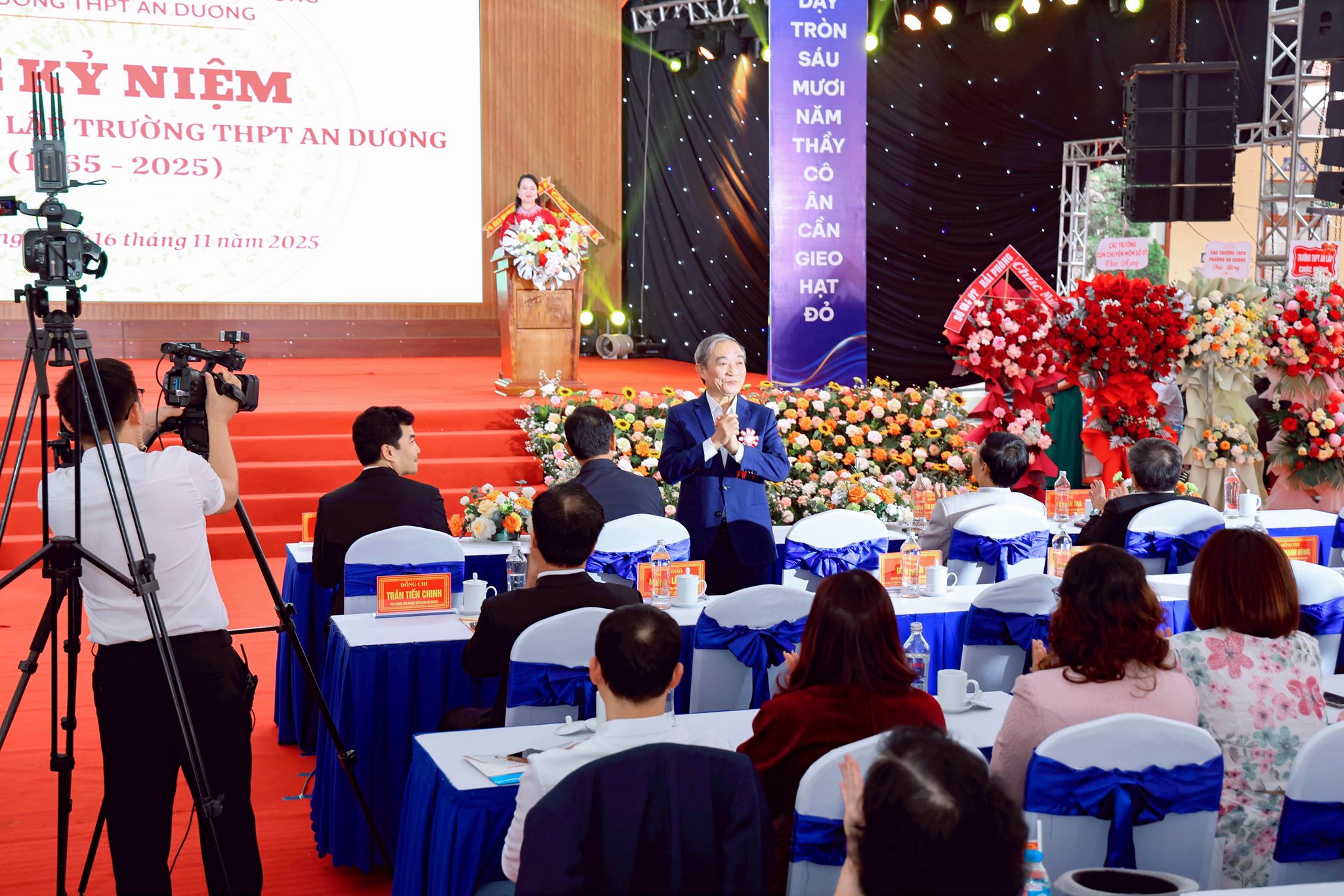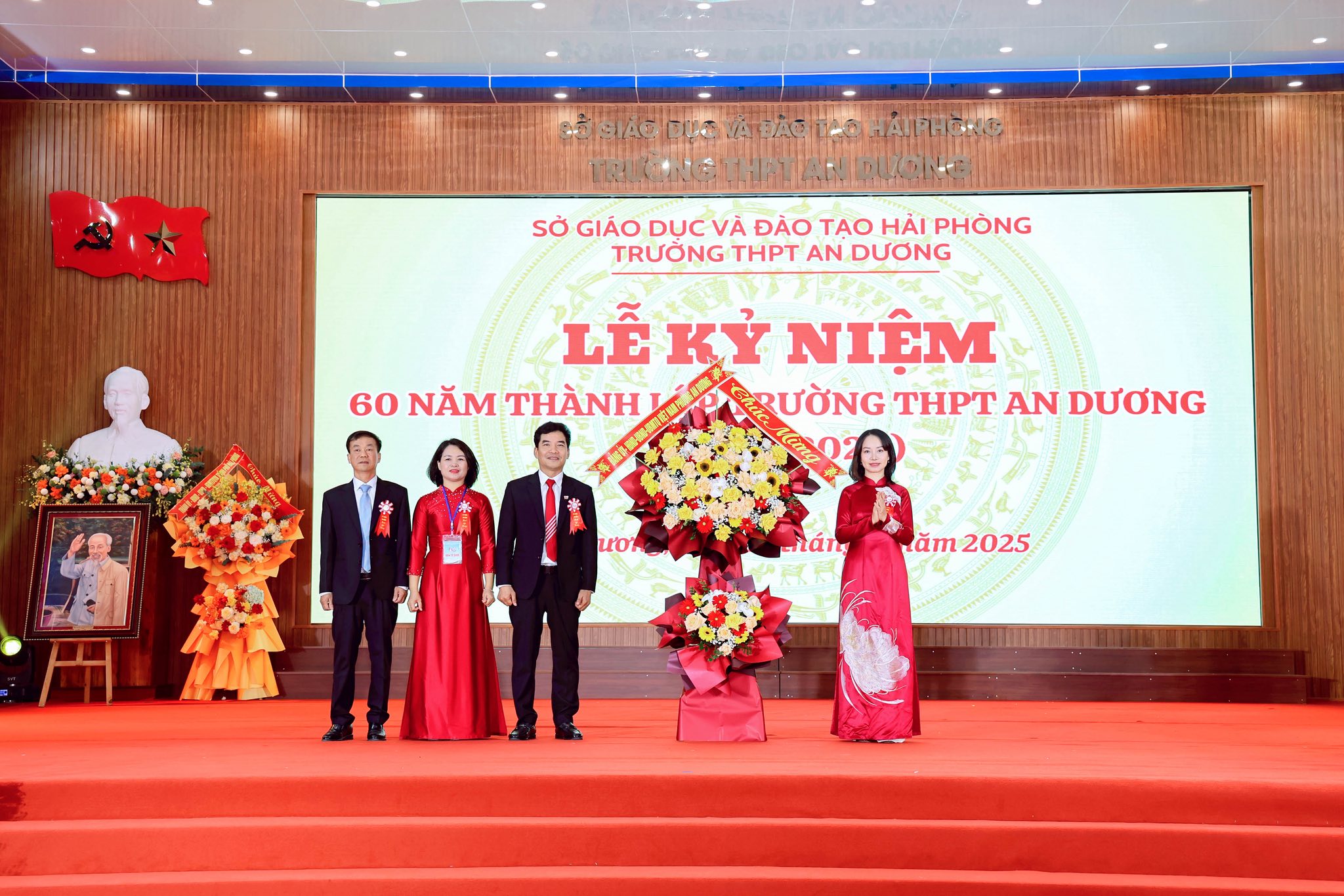 Nhân dịp này, Thành ủy - HĐND - UBND - UBMTTQVN thành phố trao tặng nhà trường bức trướng và bằng khen; đảng bộ Phường An Dương trân trọng tặng nhà trường bức trướng mang dòng chữ: “phát huy truyền thống 60 năm xây dựng và phát triển: tiên phong, đổi mới – dạy tốt, học tốt.”